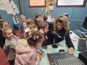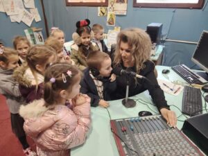 За наше мале госте, радио није само средство информација, већ и простор игре, истраживања и креативности и креативности. Посебно их је фасцинирала опрема- слушалице, микрофони и миксета.