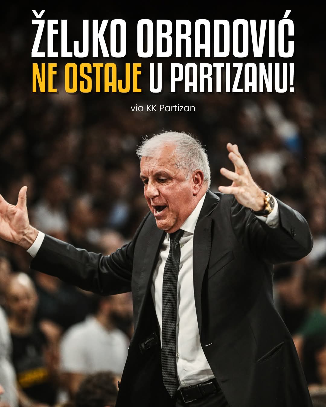 Кошаркашки и симболички значај Жељка Обрадовића за Партизан и кошарку на глобалном нивоу је немерљив. Празнина која остаје, тешко да може бити надокнађена. Жељку Обрадовићу су врата Партизана заувек отворена и Партизан ће увек бити његова кућа.